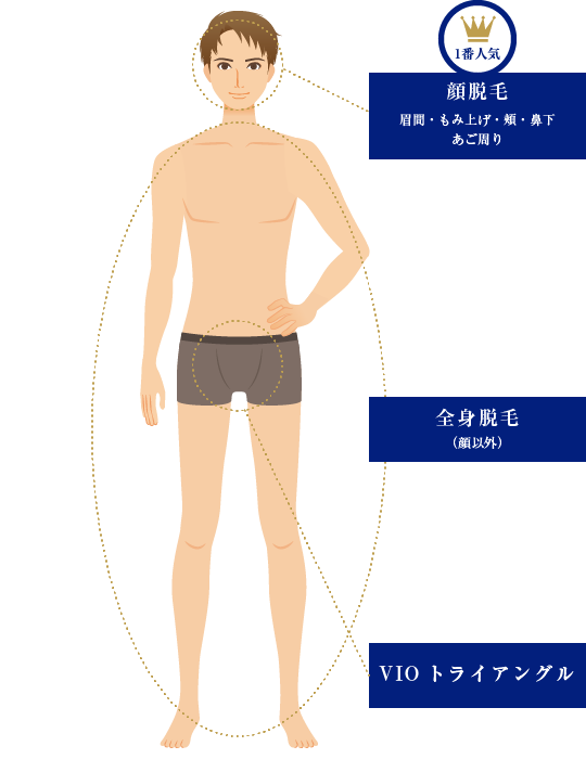 一番人気の髭脱毛の他、各所、全身脱毛も承っております。
